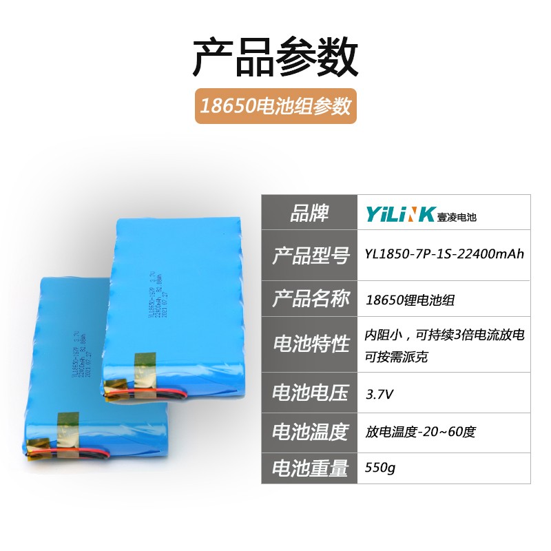 电池规格:18650-1S7P/3.7V/22400mAh